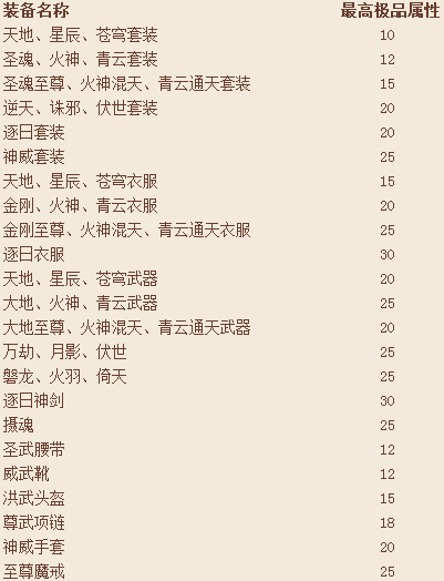 大家期待的装备祈灵最高极品属性问题,在下经过几天的查看记录,总算统计了各个区装备祈灵的最高极品属性,其中可能有些错误,希望大家能指出。为了传奇网页游戏的玩家攻略更加完善,希望G M可以帮我攻略发到官网,让更多喜欢这个游戏的朋友一起分享,也让我们不再为装备的极品属性是否合格而担忧。